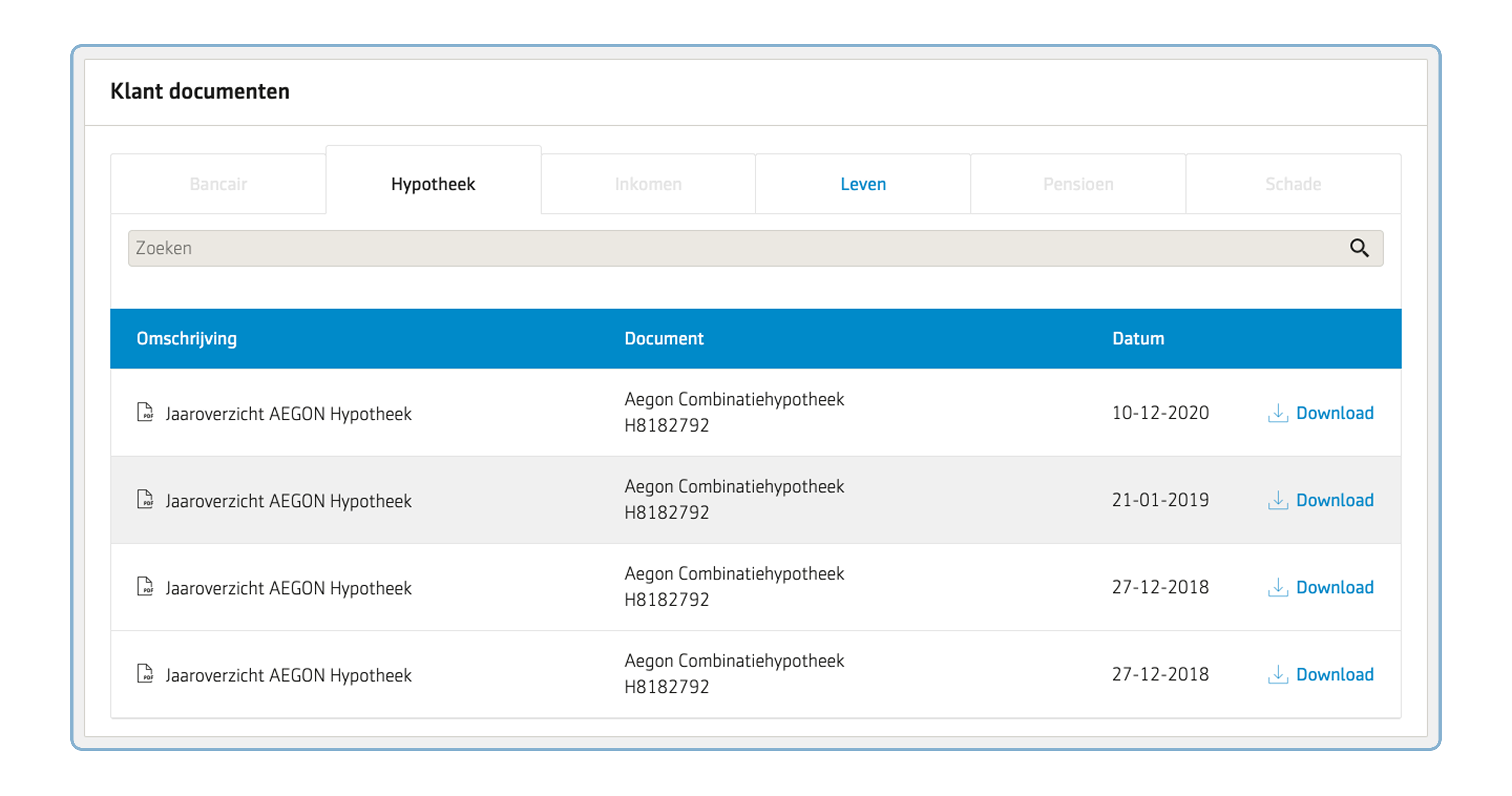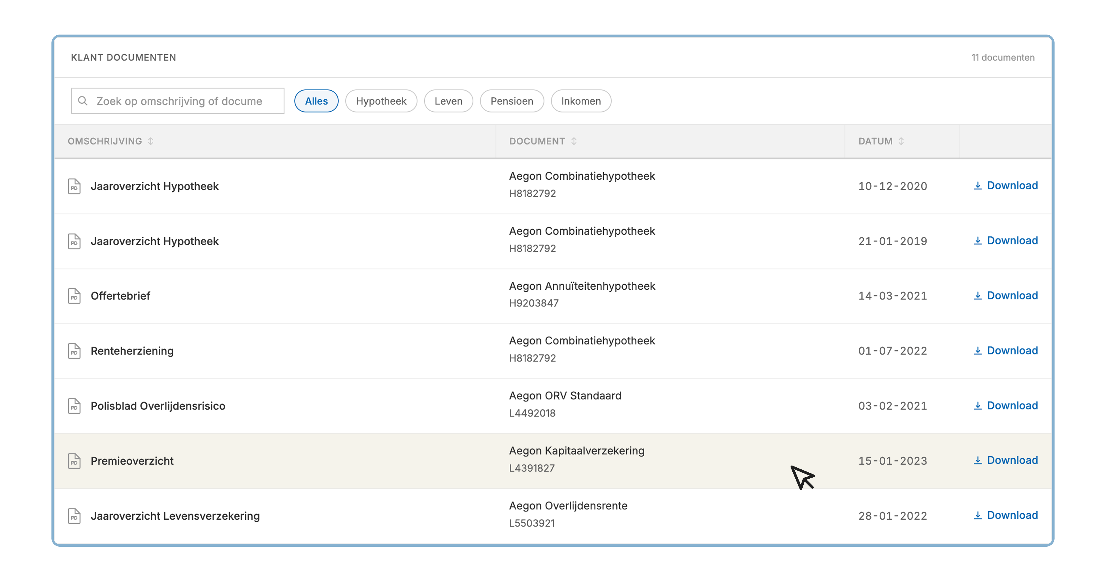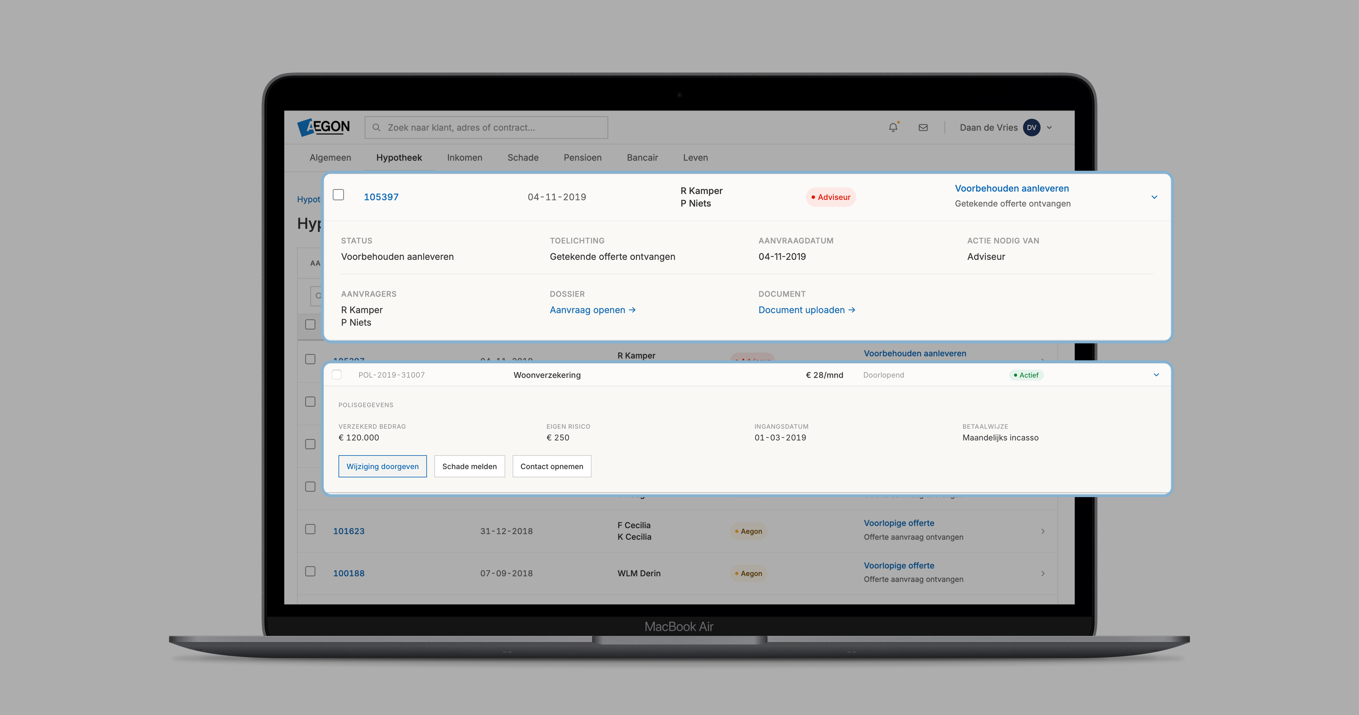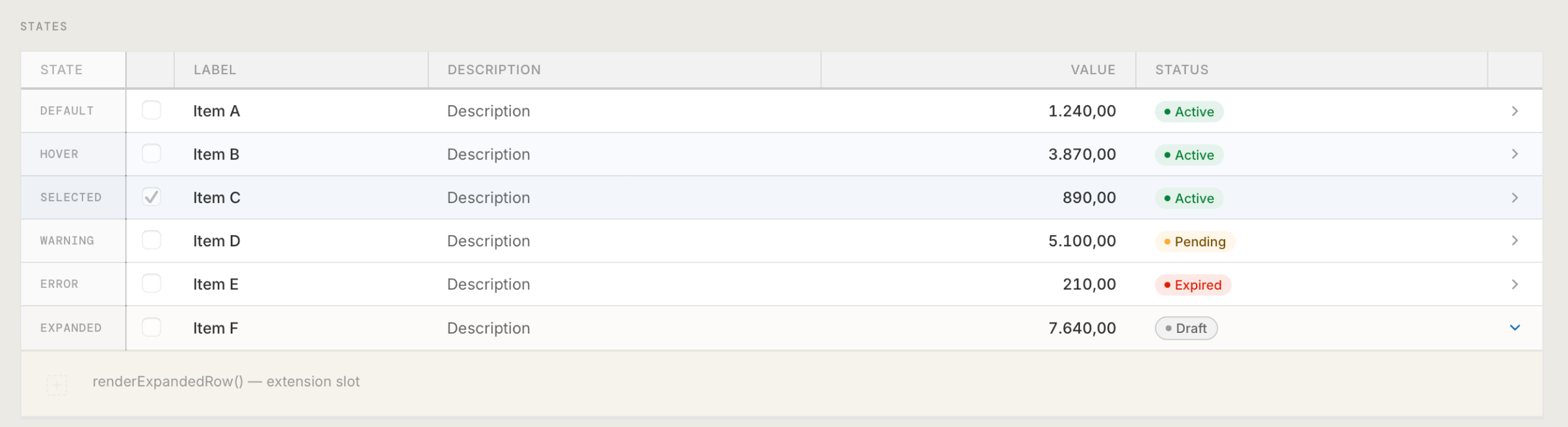We evolved the Data Table into a composable core with explicit extension points. Structure, behaviour, and accessibility shared; cell rendering, expansion slots, and conditional columns owned by Hypotheek.